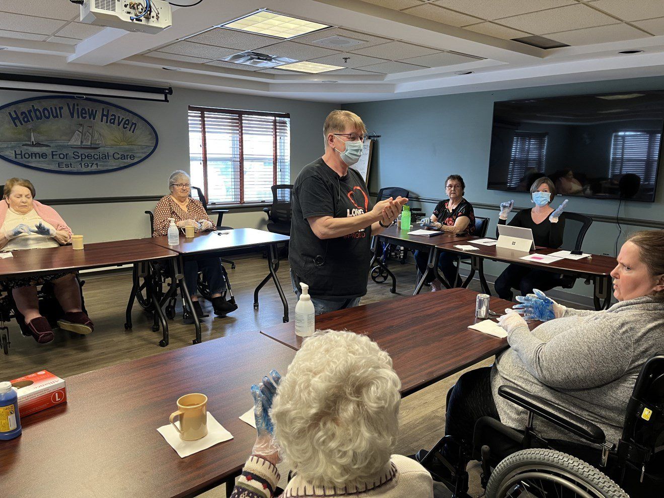 Wendy Finlayson, Infection Control Nurse was a guest speaker at our Resident Council meeting on April 29. She spoke to the group about the importance of hand hygiene and lead the group in a hand hygiene exercise, which highlighted spots on our hands that sometimes get missed when we wash.