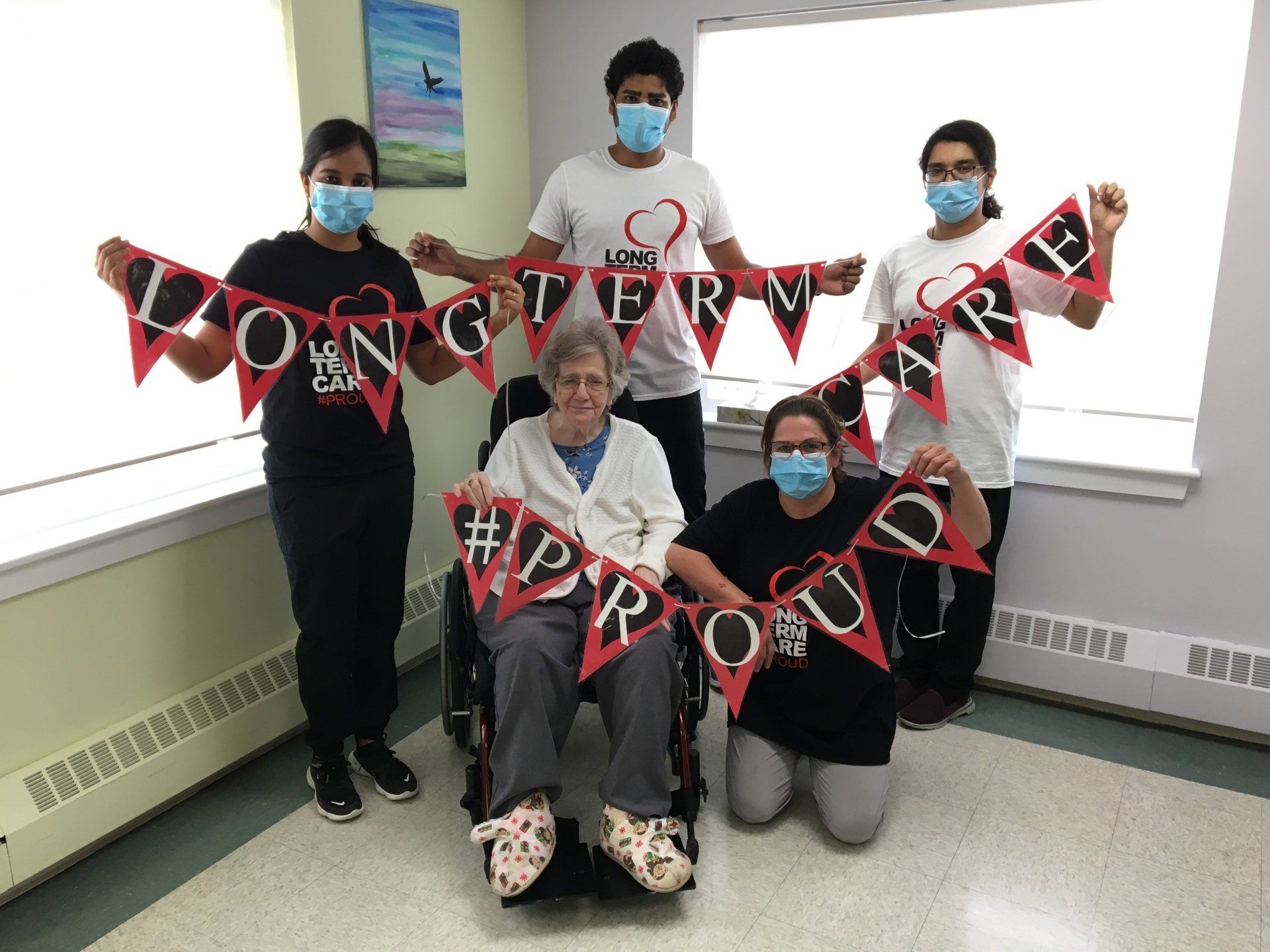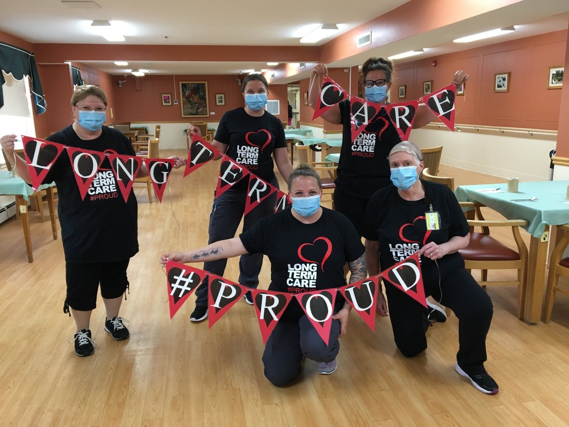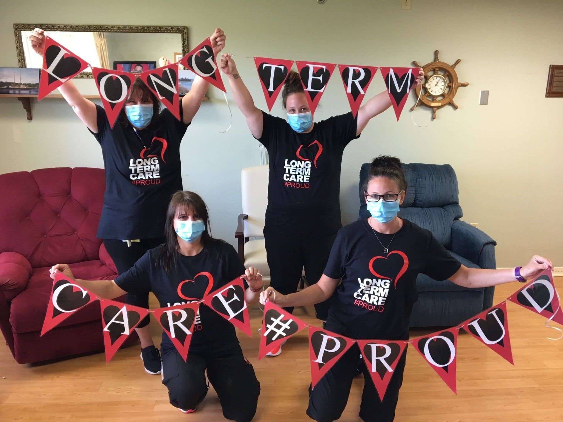 HVH has purchased t-shirts to commemorate the occasion, as have many provincial nursing homes. HVH staff wear their t-shirts today with pride, celebrating and supporting one another. Residents have also joined in a visual show of unity and positivity for all LTC workers in Nova Scotia.