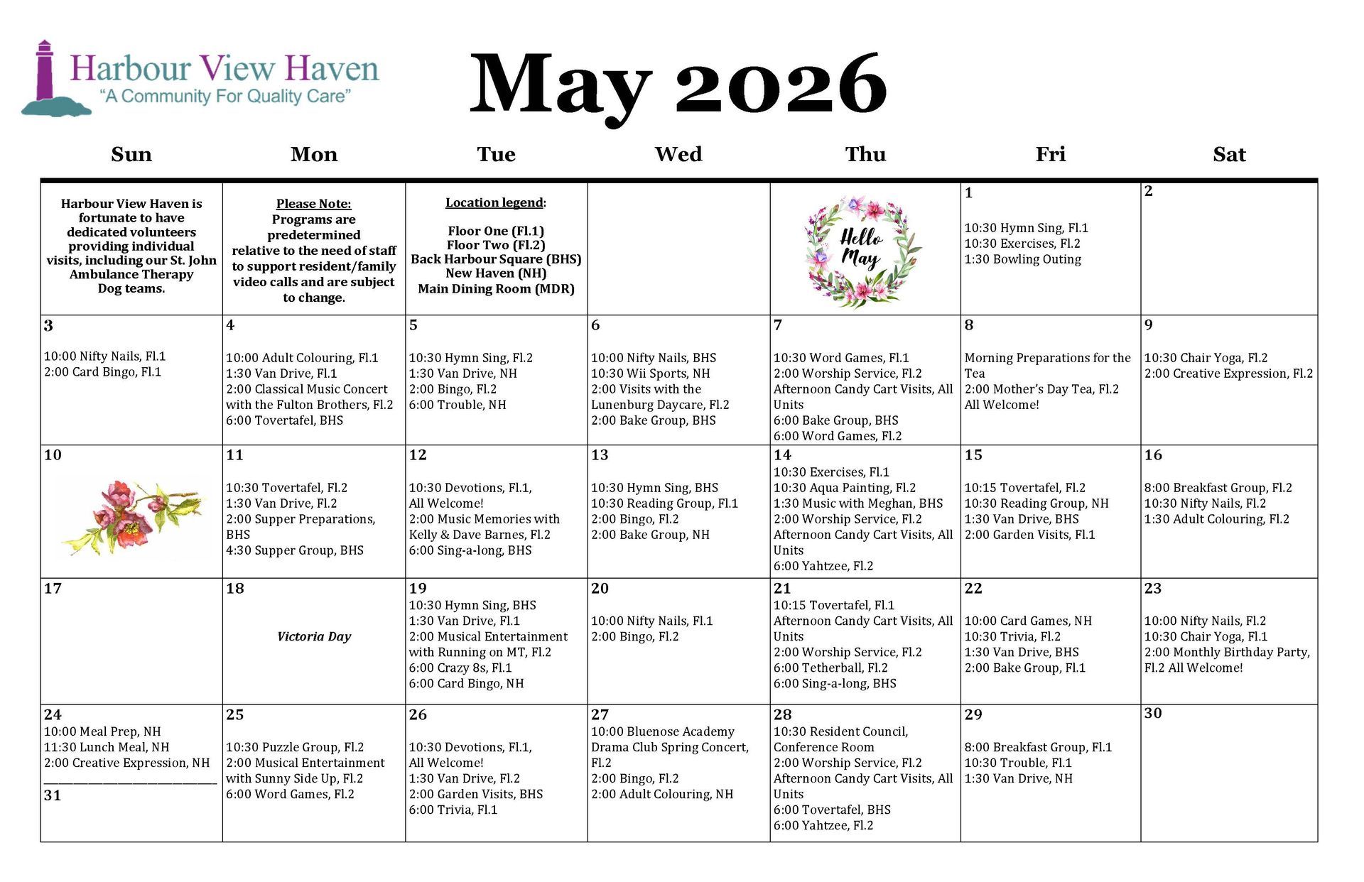 Update on Mealtimes at HVH Resident Council has voted in unanimous favor during the March meeting to move the larger meal from lunch time to supper time. This was implemented and residents are enjoying the change based on the majority of feedback collected so far. Special holiday meals will be scheduled for lunches as specified. ~ Food Services Team