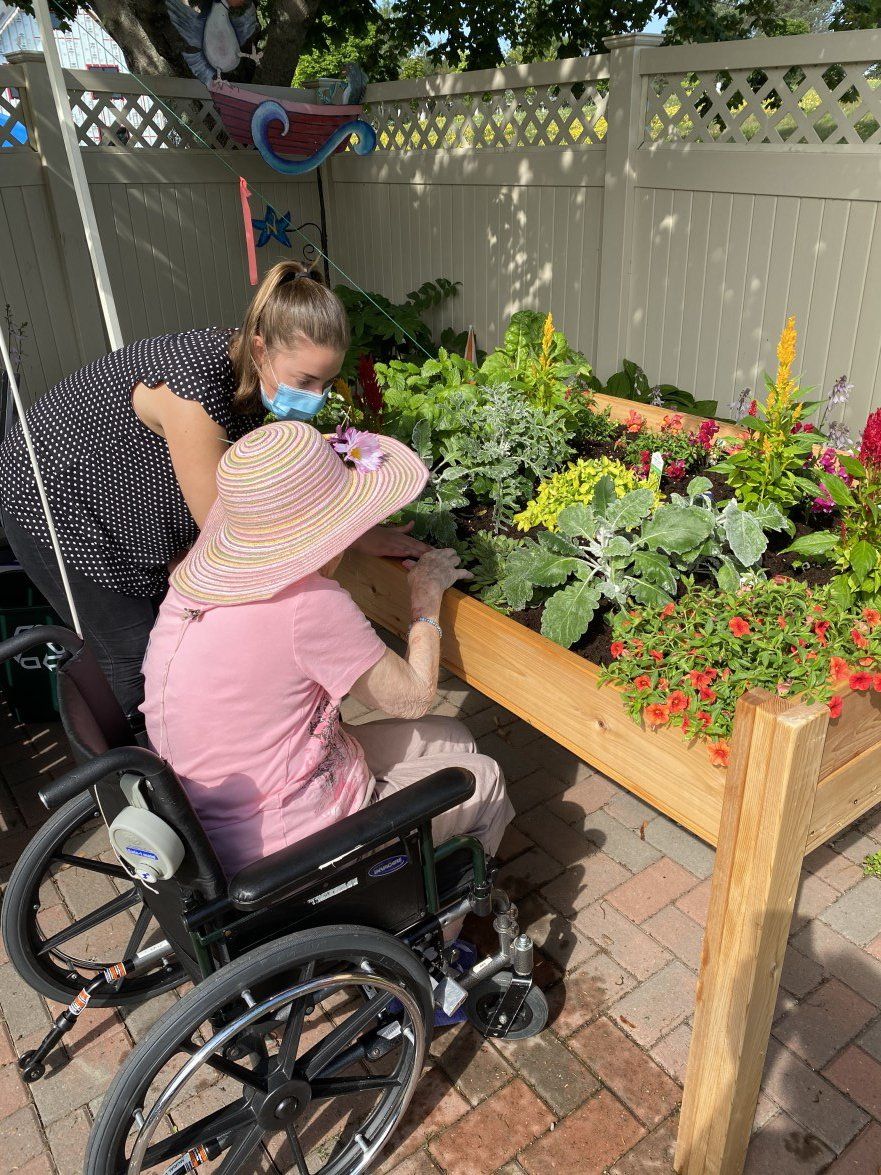 Our residents are enjoying the new sensory garden experience. They are able to smell and taste herbs, touch textured plants, listen to the water fountain and enjoy the beautiful colours of the garden. Thank you to Jim Cowan, Sue Kashanski and Richard Rachals for donating the planter pictured to the right.
